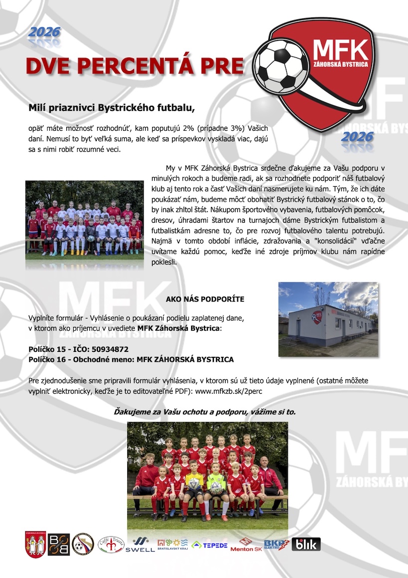 Pre zjednodušenie sme pripravili formulár vyhlásenia, v ktorom sú už tieto údaje vyplnené (ostatné môžete vyplniť elektronicky, keďže je to editovateľné PDF): MFK_ZB-Vyhlasenie_o_poukazani_2perc-2025.pdf